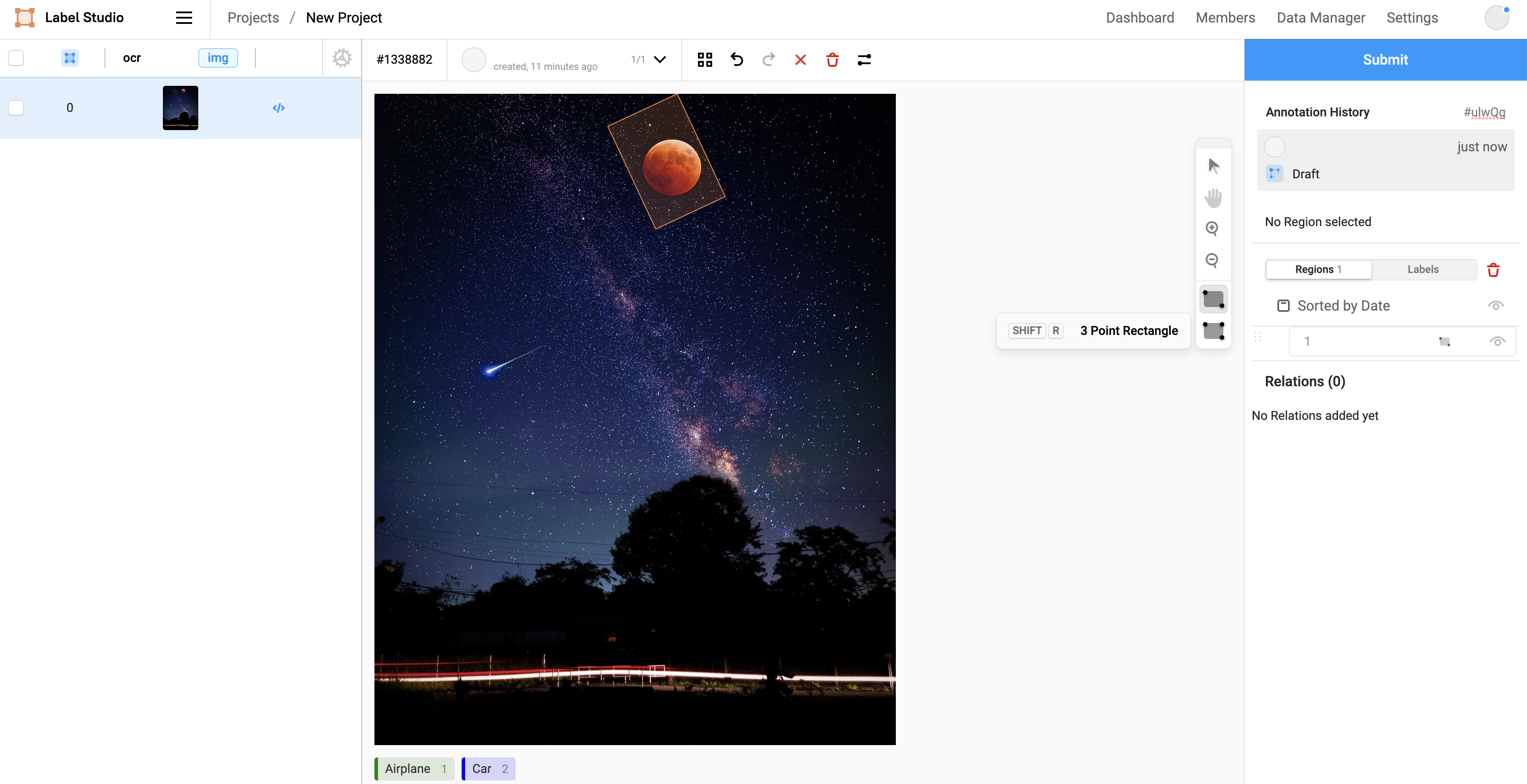 Starting with this release, as an annotator you can create a rotated bounding box with the “three point click” or “two point click” feature to annotate images.